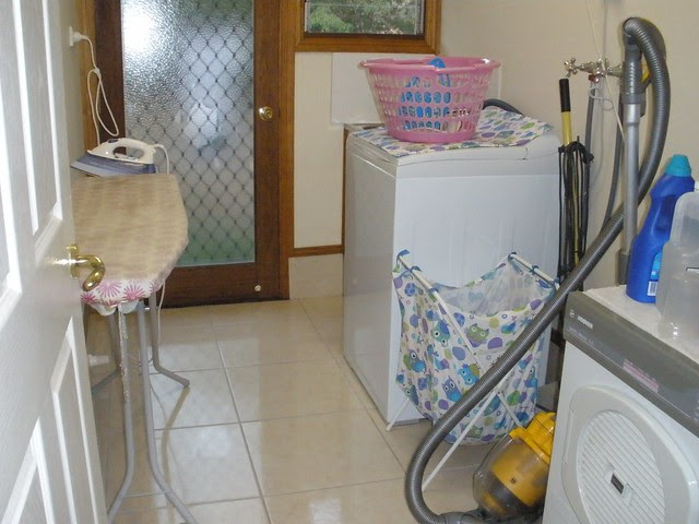 So at 4pm I took all the small things out of the laundry then cleaned the door and window with paper towel and windex. I then used some all purpose cleaner spray and paper towel to wipe over the dryer, washing machine, basin, splash back tiles, tiles and skirting board around the walls, inside door, legs of ironing board, iron, power points and switches, and taps. This took 30 minutes.